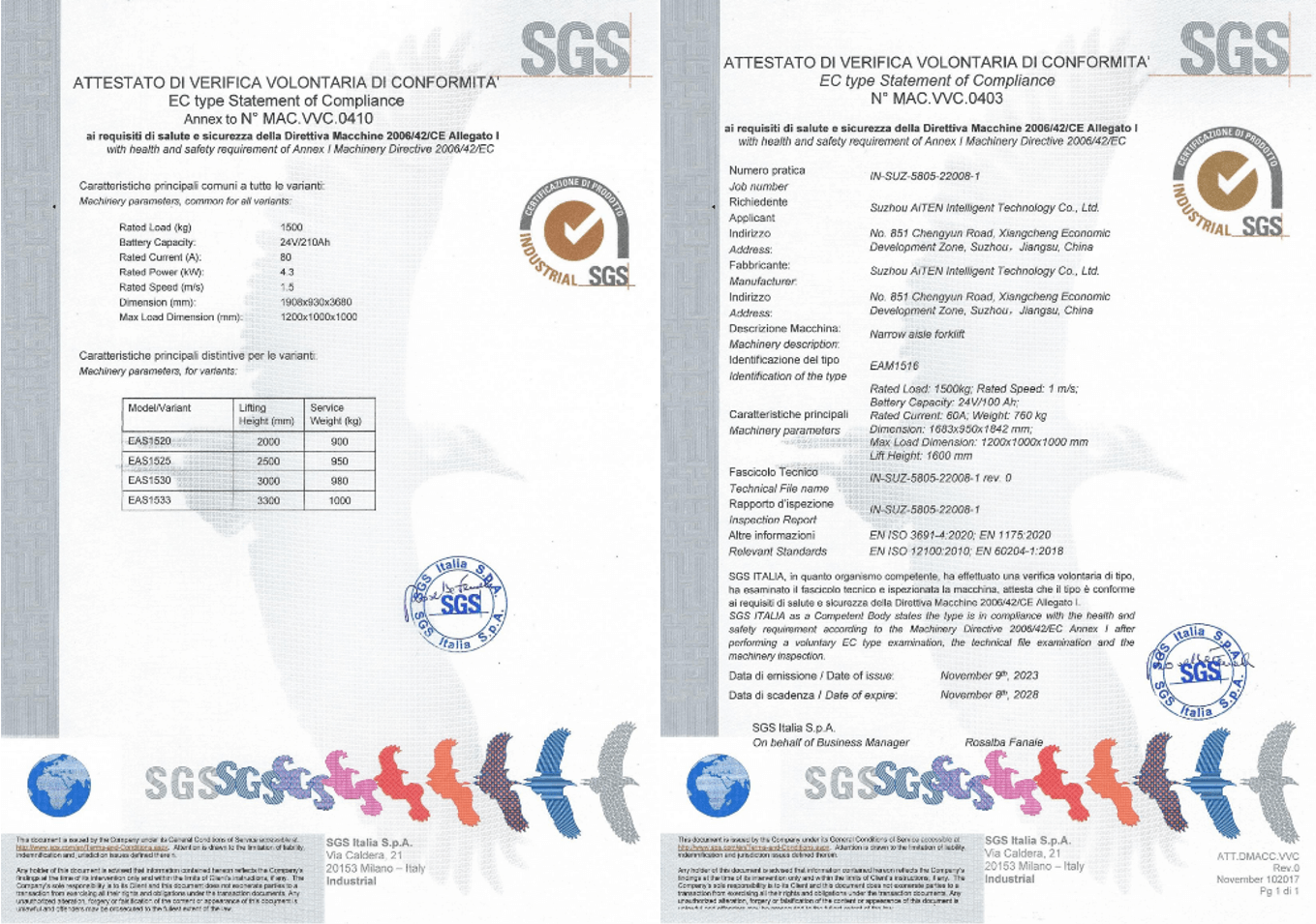 3. CE 标志(欧盟): 确保符合机械指令,强调对繁忙仓库等动态环境的风险评估,在这些环境中,叉车与行人和手动设备相互作用。为满足欧洲市场的法规要求,华体会体育产品经过严格审核,为包括 MP10AM1516AE15、AS15 和其他产品在内的 AGV 产品获得了欧盟 CE 证书。
