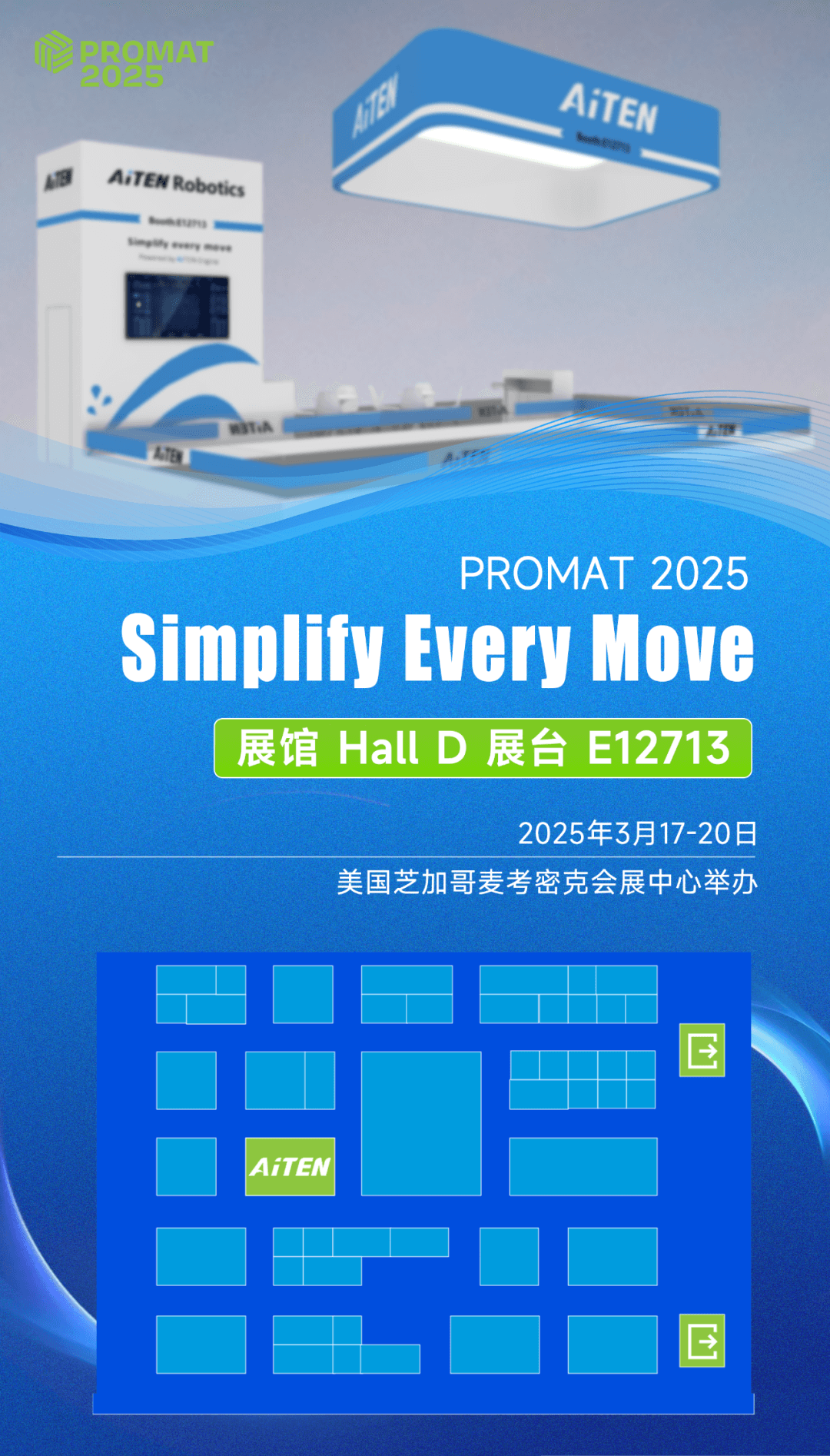 2025 年 3 月,全球物流行业的目光将聚焦于两大顶级盛会——德国 LogiMAT 物流展与美国 ProMAT 物流展作为物流智能化领域的先锋,huatihui AiTEN将携前沿技术与解决方案重磅登场,向世界展示智能物流的未来图景。